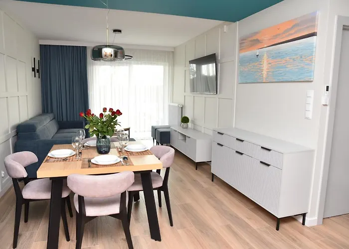 1-slaapkamer Apartament Promil Spa, Basen, Sauna, Jacuzzi I Silownia is op 6 km van het Baltic Dinosaur Park gelegen en omvat een binnenzwembad met een sauna. De luchthaven Solidarity Szczecin-Goleniów ligt op 70 km van dit appartement van 48 m^2.